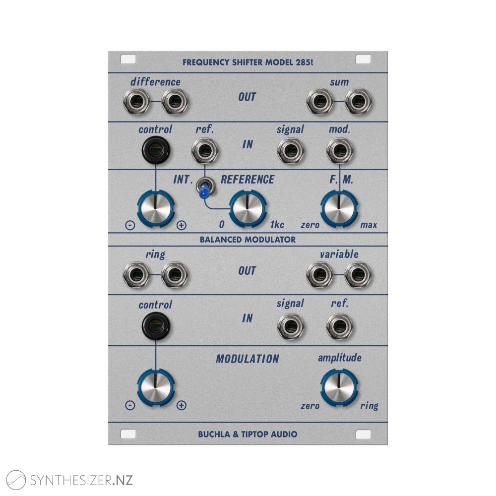The 285t seamlessly combines two powerful functions in one module: the upper section offers a voltage-controlled frequency shifter, while the lower section provides both balanced modulation and classic ring modulation. The frequency shifter can process incoming audio using its internal oscillator or an external source, with simultaneous SUM and DIFFERENCE outputs for stereo widening and creative effects.